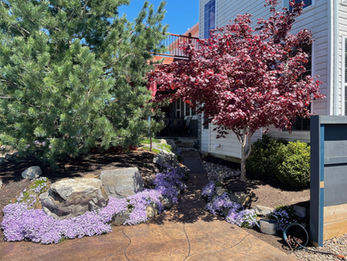 This modern covered patio was designed for year-round comfort and connection—with a wall-mounted outdoor TV, cozy sectional, and natural privacy screening. It’s the kind of space where you can watch a game, share a meal, or unwind in the shade without ever leaving home.